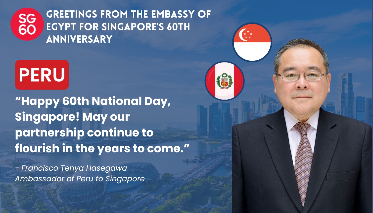 The Embassy of Peru marks Singapore’s 60th National Day with a message of friendship, highlighting 45 years of growing bilateral ties in trade, sustainability, and people-to-people connections.