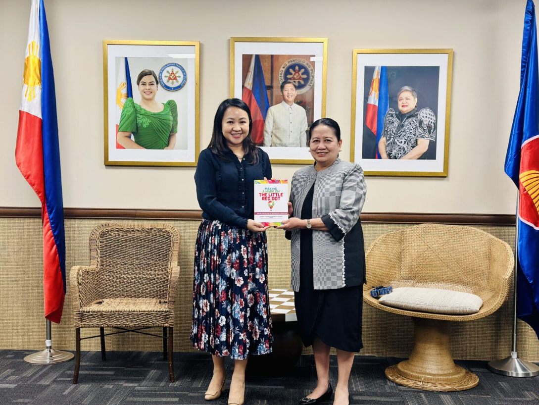 As a gesture of appreciation, CDA Santos presented Undersecretary Bay with a copy of Making a Mark on the Little Red Dot: Trailblazing Filipino Entrepreneurs in Singapore, a book published by the Embassy in celebration of the 55th anniversary of Philippines–Singapore diplomatic relations in 2024.