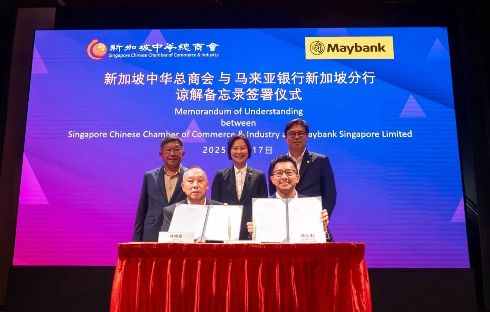 The Singapore Chinese Chamber of Commerce & Industry (SCCCI) and Maybank Singapore Limited (Maybank) signed a Memorandum of Understanding (MoU) to enhance cross-border business cooperation and promote investments across Southeast Asia, with a particular focus on Singapore, Malaysia, and the Johor-Singapore Special Economic Zone (JS-SEZ). The signing was witnessed by Ms Gan Siow Huang, Singapore’s Minister of State for Foreign Affairs and Trade and Industry.