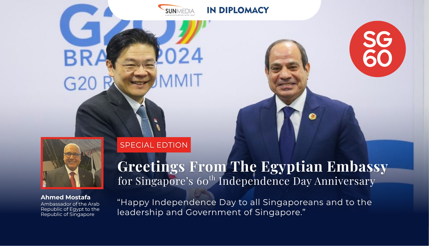 As Singapore celebrates six decades of independence, the Egyptian Embassy marks the occasion with a message of goodwill and a look back at the longstanding Egypt–Singapore relationship.