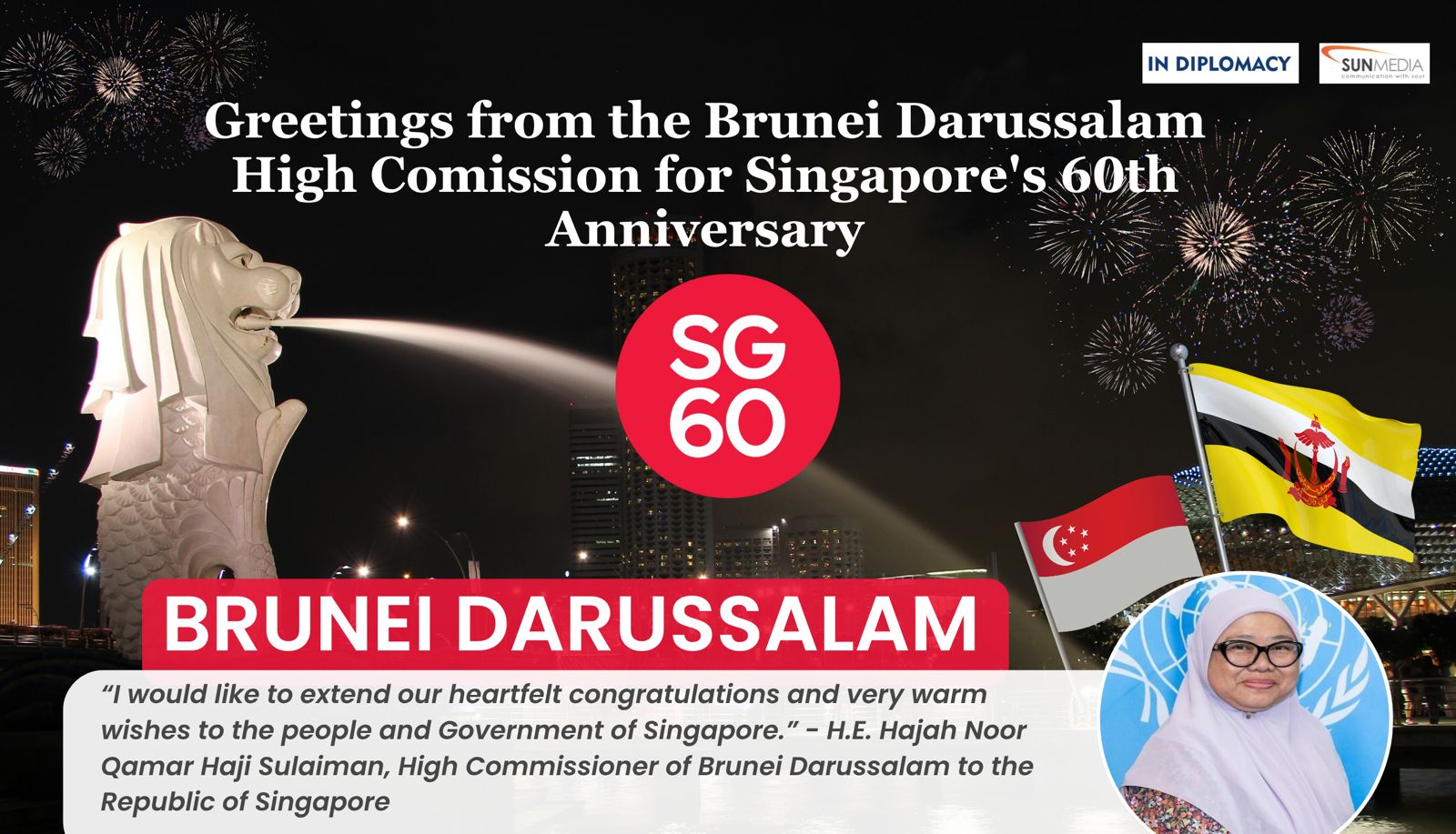 Singapore, August 2025 – As part of IN Diplomacy’s Singapore National Day Edition Feature, Her Excellency Hajah Noor Qamar Haji Sulaiman, High Commissioner of Brunei Darussalam to the Republic of Singapore, has extended warm congratulations to Singapore on its 60th year of independence. The message also commemorates a key milestone in bilateral ties—40 years of diplomatic relations between Brunei and Singapore, established in January 1984 following Brunei’s independence.