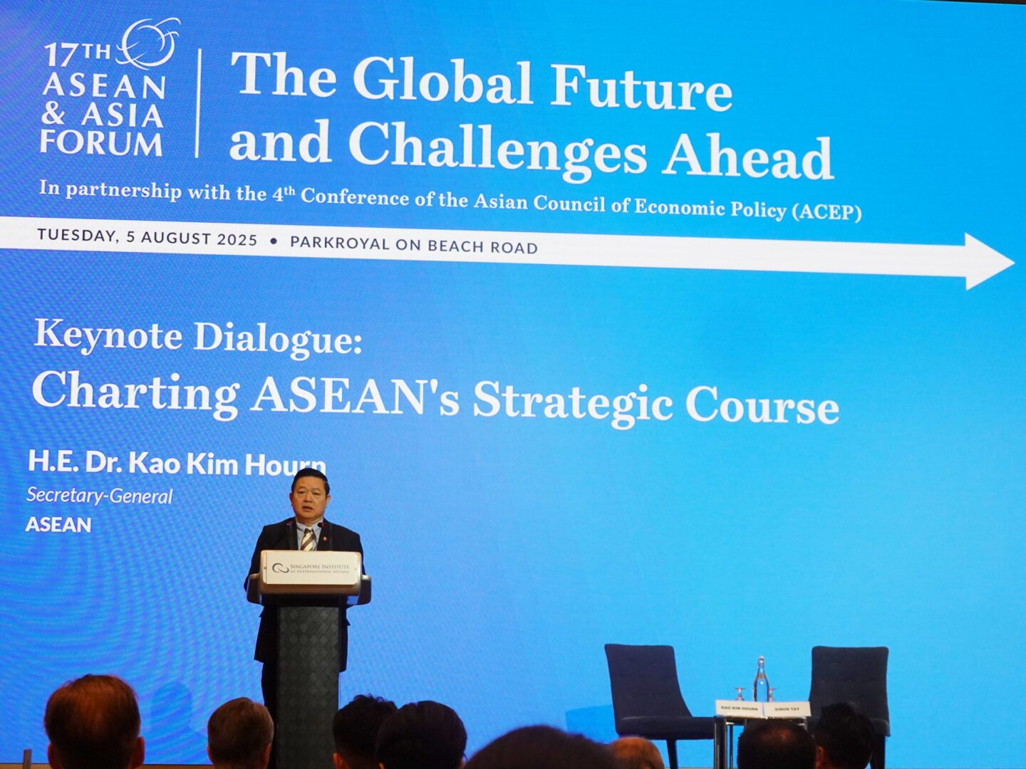 SINGAPORE — The Secretary-General of ASEAN, Dr Kao Kim Hourn, delivered the keynote address titled “Charting ASEAN’s Strategic Course” at the 17th ASEAN and Asia Forum, held in Singapore today.