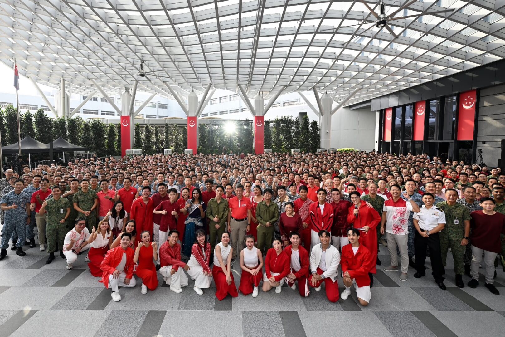 Personnel from MINDEF and SAF and performers from Music and Drama Company at the MINDEF’s NDOC 2025. Image: MINDEF