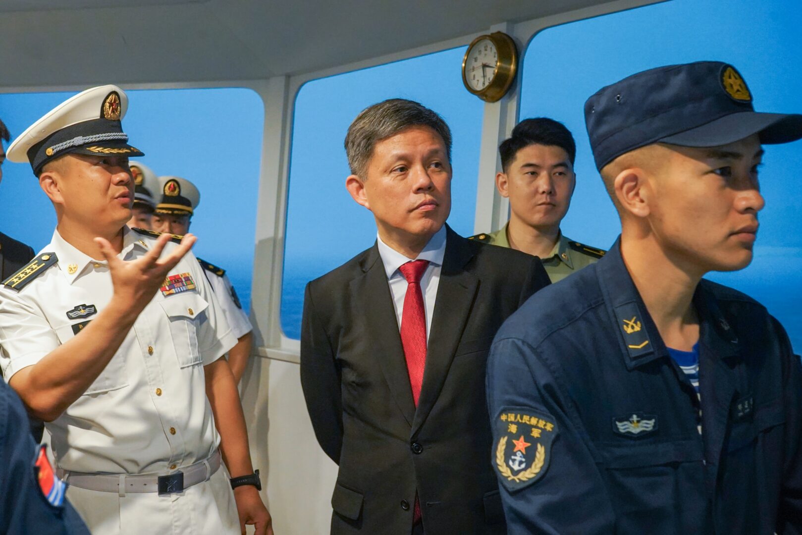On 16 September, Mr Chan continued his visit to the PLA STC Navy headquarters in Zhanjiang, where he was welcomed by PLA STC Navy Political Commissar Vice Admiral Yang Zhiliang. He inspected a Guard of Honour aboard the PLA Navy’s Luyang III-class destroyer Zhanjiang and toured the PLA Navy’s shore training facility. Mr Chan was also briefed on advanced capabilities, including its simulation training system and damage control centre.