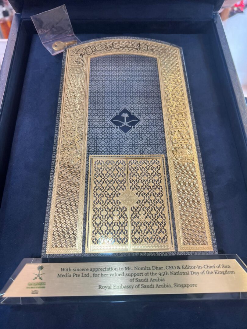 The Royal Embassy of Saudi Arabia in Singapore recognised Ms. Nomita Dhar, CEO and Editor-in-Chief of Sun Media Pte Ltd, for her contributions to strengthening Saudi-Singapore relations and cultural understanding.