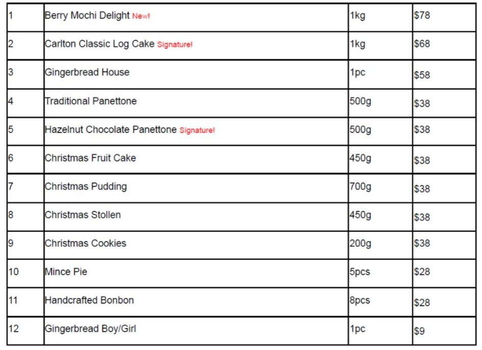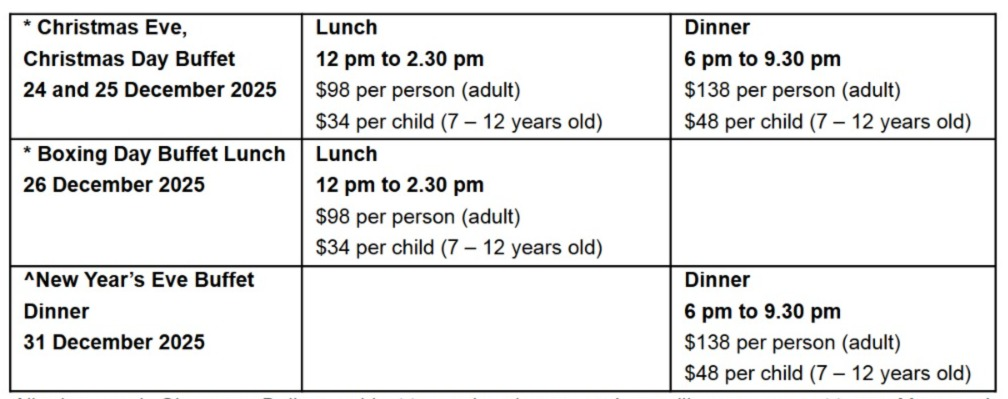 For orders and enquiries, please contact the festive desk at +65 6349 1292, email restaurants@carltonhotel.sg or visit https://celebrations.carltonhotel.sg/.