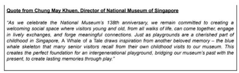A Whale of a Tale, a Magical Bridge Design provides a new space as part of the museum’s vision to be a social space where everyone can interact, bond, and engage with history and culture. It complements ongoing initiatives such as Reunion, a dedicated senior-friendly space for communities to gather; and other family-friendly programmes such as the museum’s annual Children’s Season offering, Get Curious.