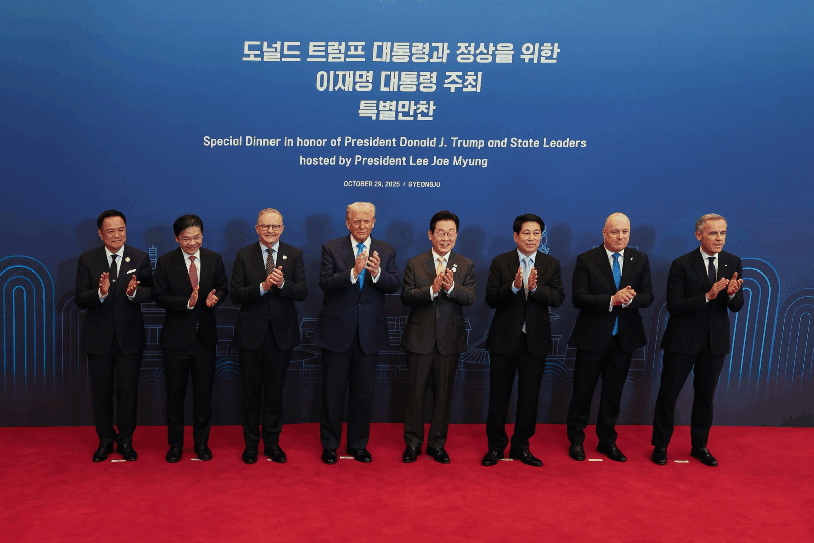 On 29 October 2025, Prime Minister and Minister of Finance Lawrence Wong represented Singapore at a dinner hosted by Republic of Korea President Lee Jae Myung, alongside leaders from Australia, New Zealand, Canada, Thailand, and Vietnam, to welcome former US President Donald J. Trump to the region. The event provided a platform for wide-ranging discussions on global developments, regional security, and collaborative opportunities.