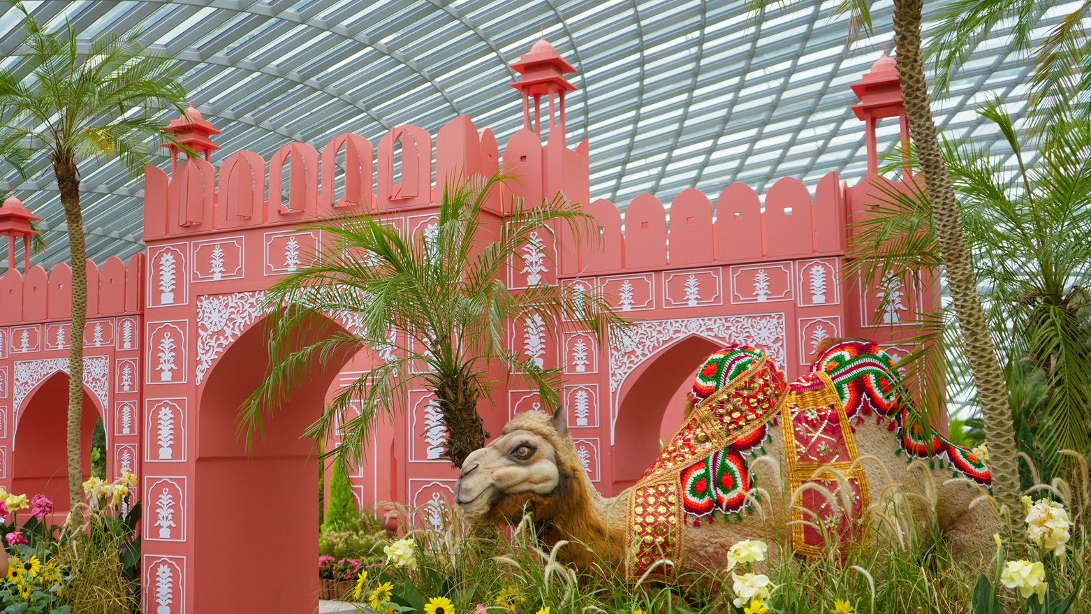 The Ajmeri Gate, renowned for its iconic pink limewash, holds a special place in Indian architectural history. Its distinctive hue was introduced in 1876 to welcome the Prince of Wales, marking the moment when Jaipur earned its nickname — the Pink City. The meticulously crafted replica at Gardens by the Bay pays tribute to this timeless beauty, blending art, history, and horticulture in one immersive experience.
