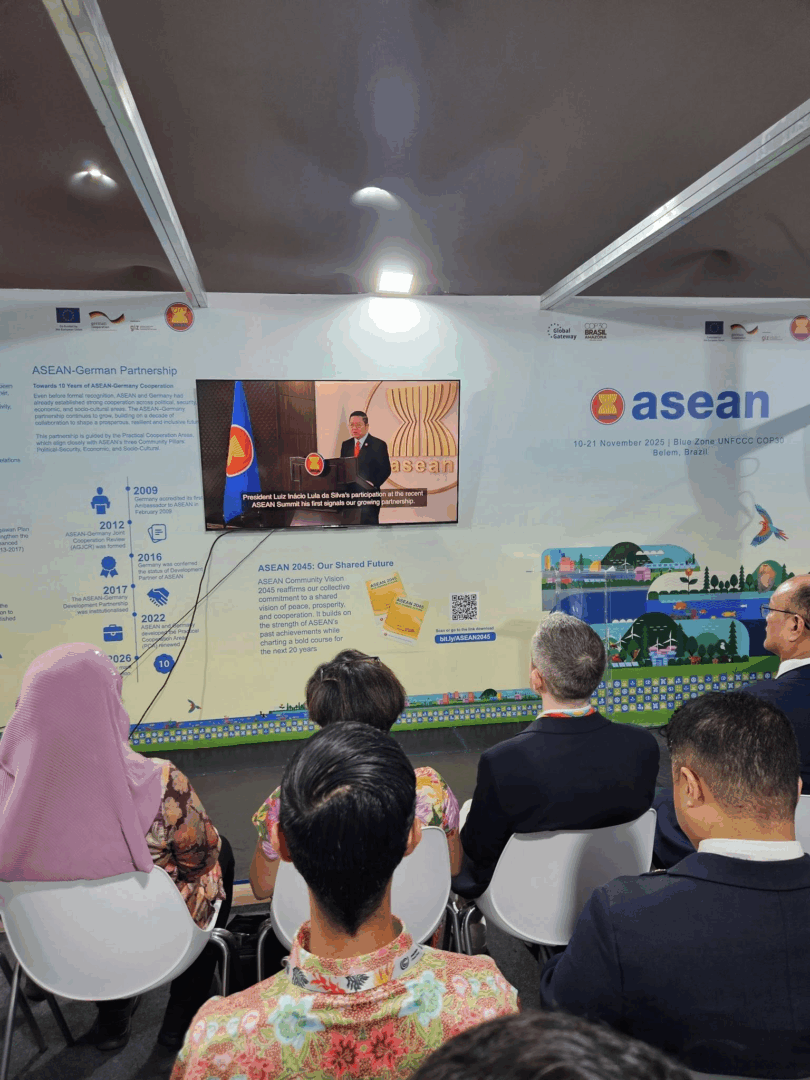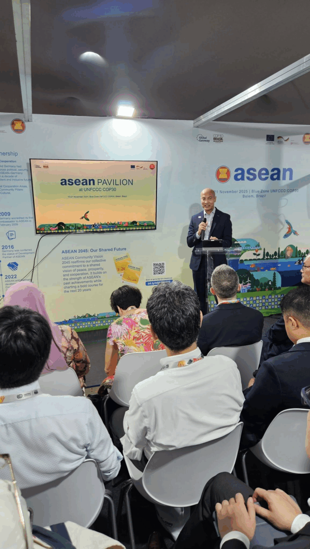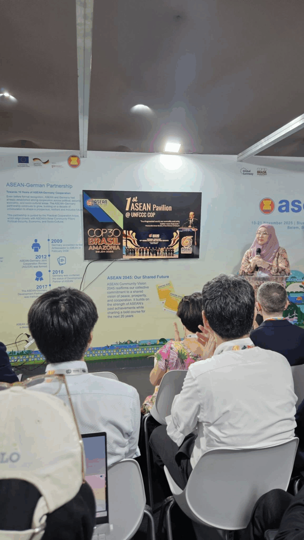 The ASEAN Pavilion at COP30 is supported by the ASEAN–EU–German Climate Action Programme, a project funded by the European Union (EU) and the Government of Germany, and implemented by Deutsche Gesellschaft für Internationale Zusammenarbeit (GIZ) GmbH, in partnership with the AWGCC and the ASEAN Secretariat. This initiative strengthens ASEAN’s engagement in global climate diplomacy while promoting dialogue among governments, industry leaders, and climate experts.