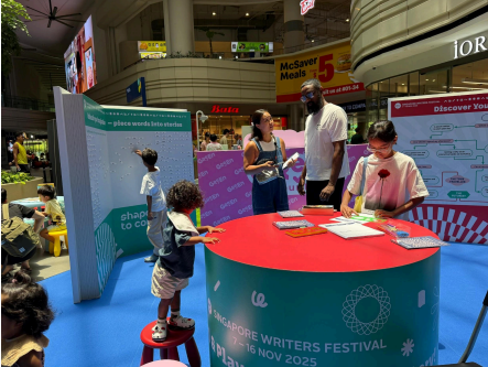 Community engagement grew through Stories Across Generations, Snippets of the Future and a series of outreach pop-ups at Bedok Public Library, Westgate, Sengkang Grand Mall and Funan, featuring activities by Closetful of Books and other partners. These initiatives brought the literary arts into the heart of neighbourhoods, transforming everyday MRT stations into lively literary spaces, creating opportunities for families and new audiences to connect with stories, writers and the joy of reading beyond traditional festival venues.