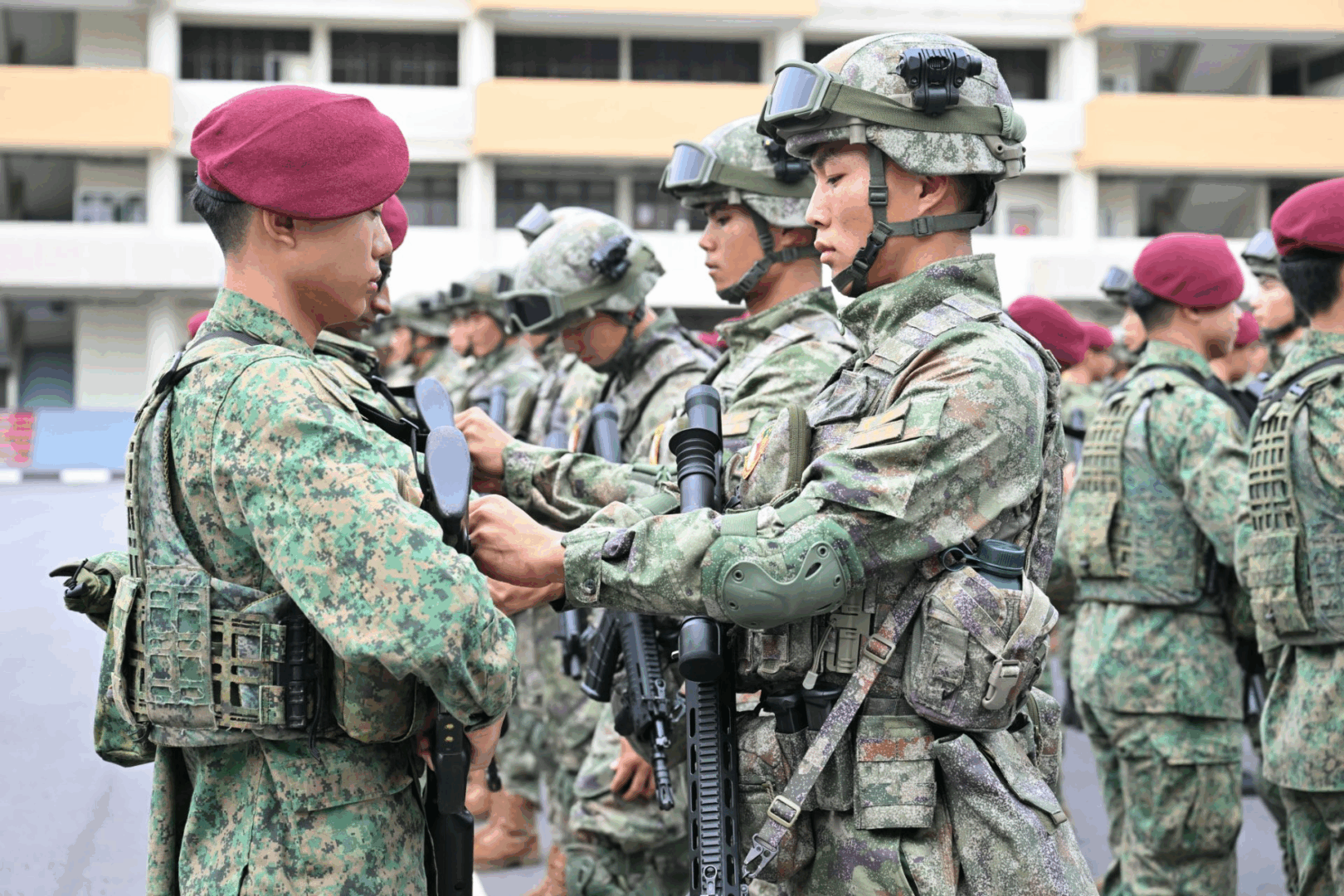 Participants trained together in a range of scenarios, including tactical drills, small-arms live firing, and the deployment of drones for basic reconnaissance and patrol missions. A key highlight of the programme was a battalion-level Field Training Exercise, conducted for the first time at SAFTI City, Singapore’s next-generation urban operations training facility.