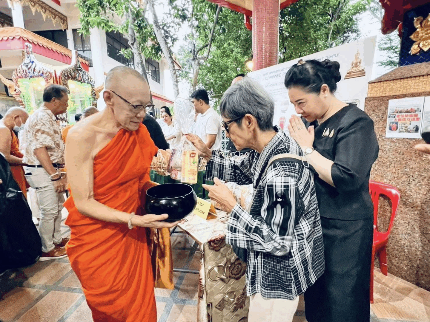 The ceremony was presided over by Phra Panyathammavithet, Abbot of Wat Ananda Metyaram, as the head of the Sangha, and Phra Khru Sophon Puttikhun, Abbot of Wat Phutthakhun, serving as Chair of the Thai Sangha Assembly in Singapore. A total of 69 distinguished Thai monks from various Thai temples in Singapore received offerings from the participants.
