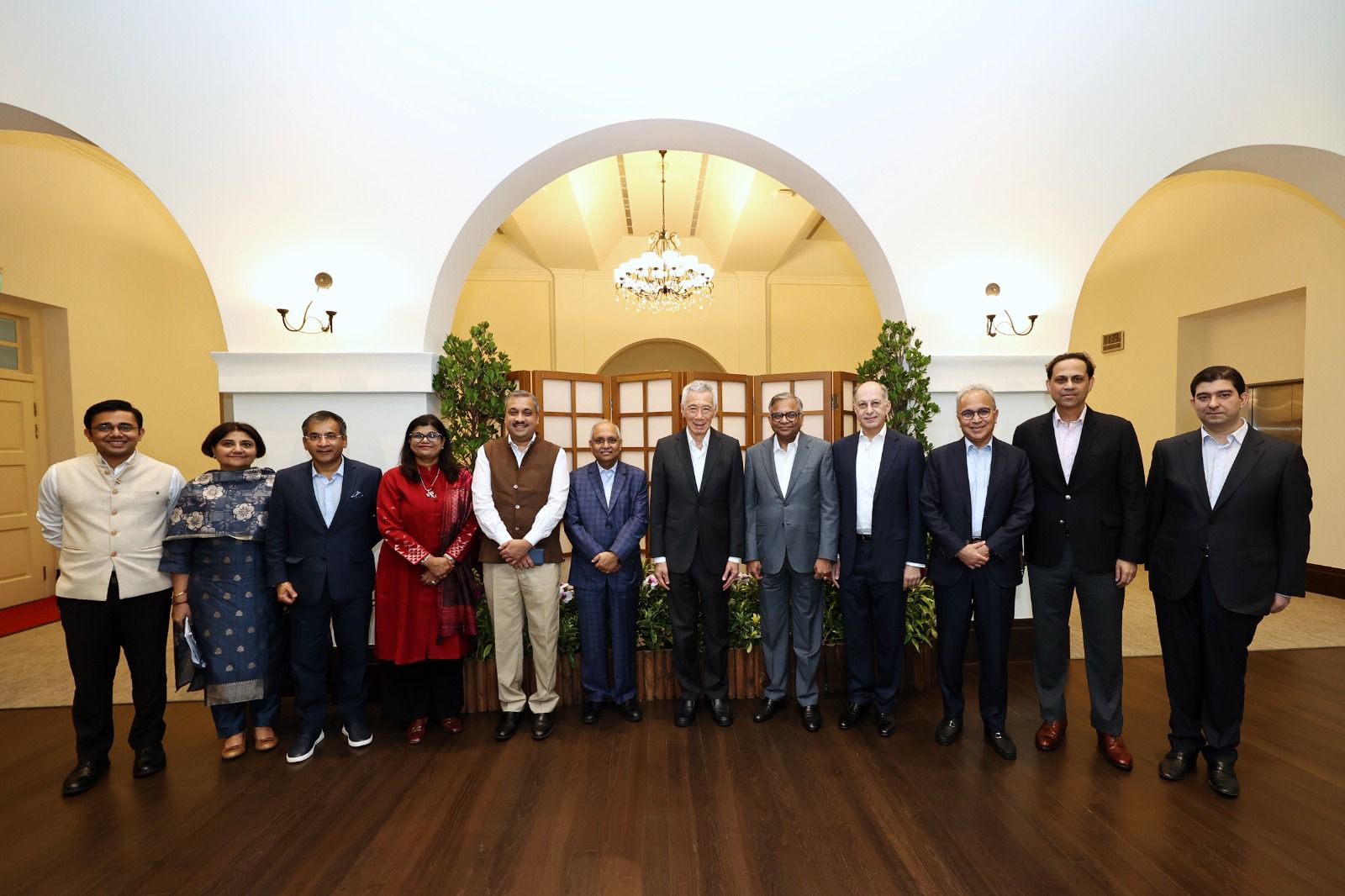 The delegation was led by N Chandrasekaran, Leader of the Core Group and Executive Chairman of Tata Sons. Other members included Chandrajit Banerjee, Director General of the Confederation of Indian Industry (CII); Rajiv Memani, Regional Managing Partner of EY Africa India region and Chair of EY Growth Markets Council; Sanjiv Bajaj, Chairman and Managing Director of Bajaj Finserv Limited; Naushad Forbes, Co-Chairman of Forbes Marshall; Suchitra Ella, Co-Founder and Managing Director of Bharat Biotech; Nikhil Sawhney, Vice Chairman and Managing Director of Triveni Turbines; and Udayant Malhoutra, CEO and Managing Director of Dynamatic Technologies.
