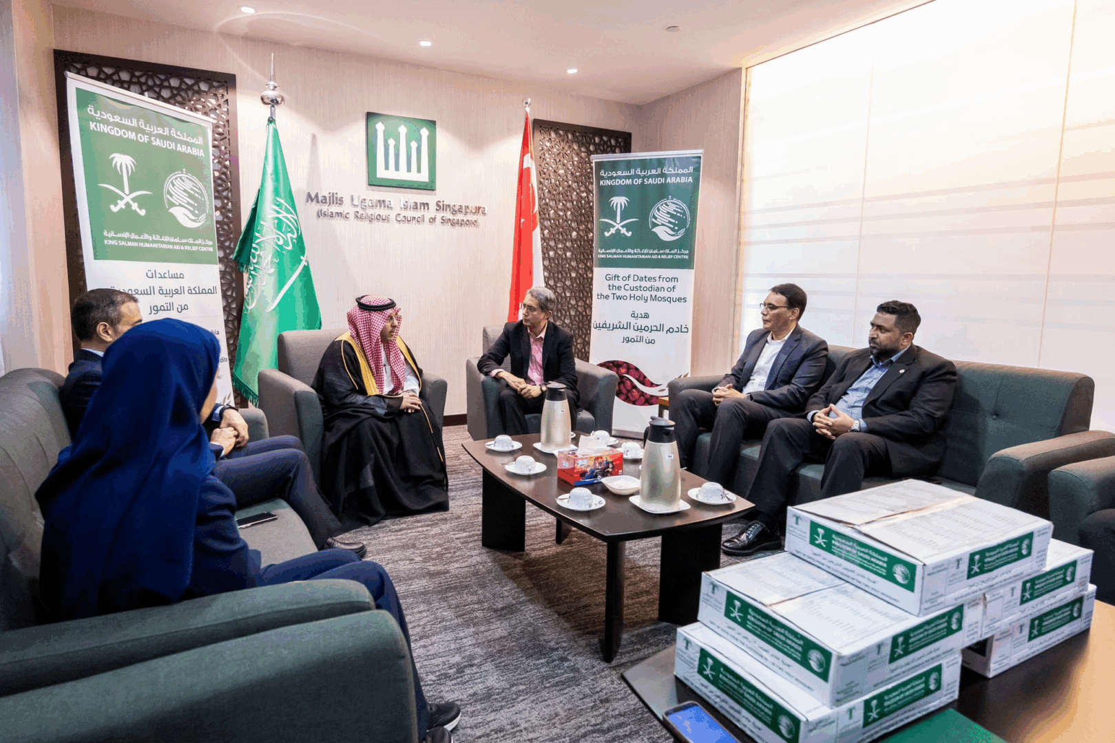 In a separate engagement, Ambassador Alghamdi joined Muhammad Faishal Ibrahim, Singapore’s Minister-in-charge of Muslim Affairs, and Kadir Maideen, Chief Executive Officer of the Islamic Religious Council of Singapore (Majlis Ugama Islam Singapura), to launch the Custodian of the Two Holy Mosques’ Dates Gift programme in Singapore. The initiative, conducted during Ramadan, involved the distribution of 1,500 cartons of dates through mosques and community institutions. The programme formed part of Saudi Arabia’s annual outreach efforts to support Muslim communities abroad and to promote solidarity during the holy month.