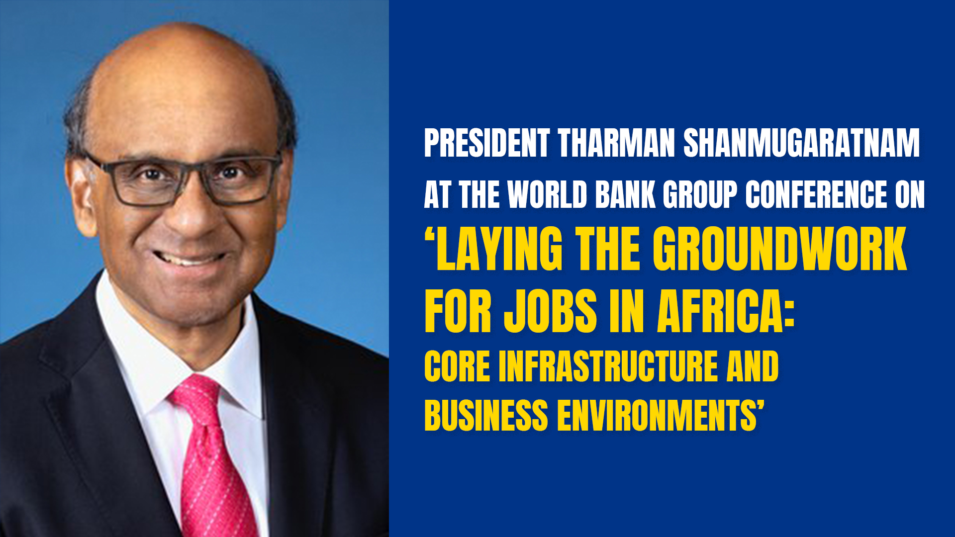 President Tharman Shanmugaratnam delivered opening remarks at the World Bank Group Conference on “Laying the Groundwork for Jobs in Africa: Core Infrastructure and Business Environments” held at Banca d’Italia in Rome, Italy, on 4 March 2026. The event was attended by Banca d’Italia Governor Fabio Panetta, Italian Minister of Economy and Finance Giancarlo Giorgetti, World Bank President Ajay Banga, and European Central Bank President Christine Lagarde.