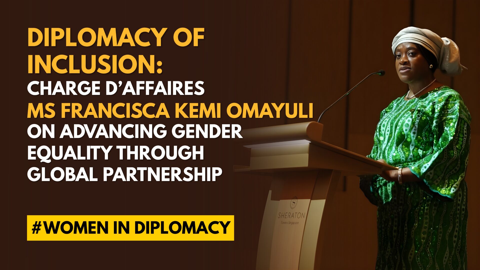 In a reflective written interview with IN Diplomacy, Charge d’Affaires en titre Ms Francisca Kemi Omayuli of Nigeria to Singapore shared insights on leadership, gender equality, and the evolving role of diplomacy in shaping inclusive societies. The discussion centred on the theme “Give to Gain”, exploring how deliberate investments in women and girls can unlock broader societal progress while strengthening bilateral and multilateral cooperation.